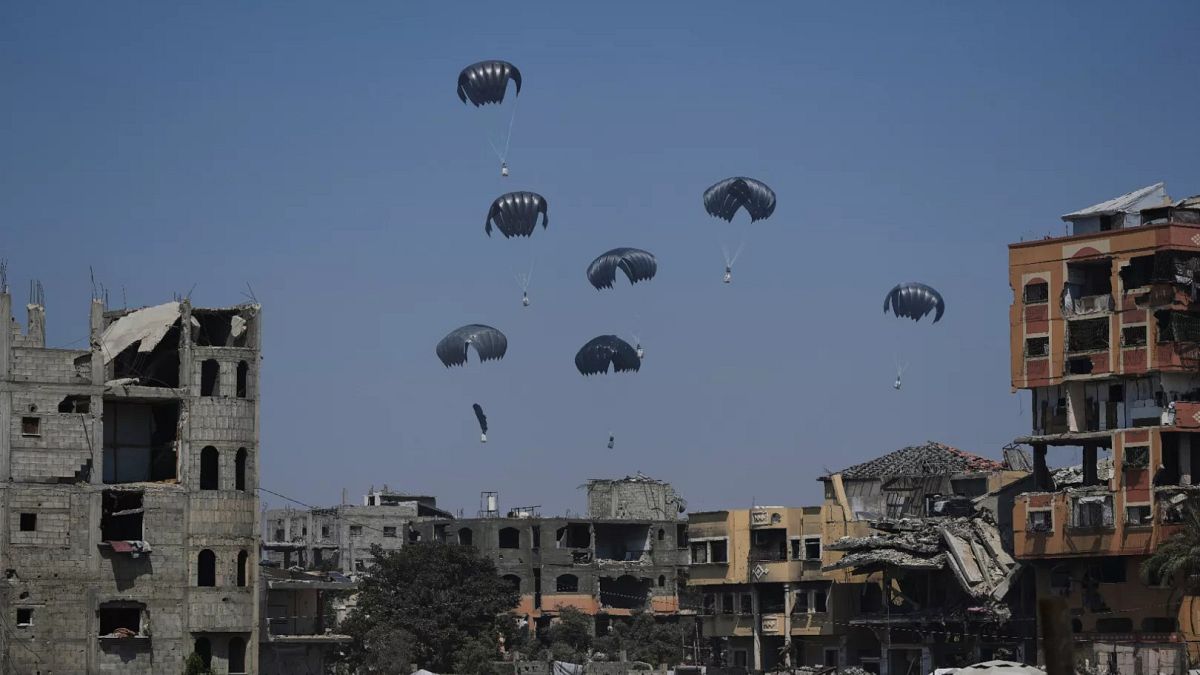 İsrail insani yardım koridorlarını açtıktan ve Filistin bölgesindeki çatışmaları kesintiye uğrattıktan sonra Pazar günü Gazze'nin bazı bölgelerine uçakta gıda yardımı başladı.